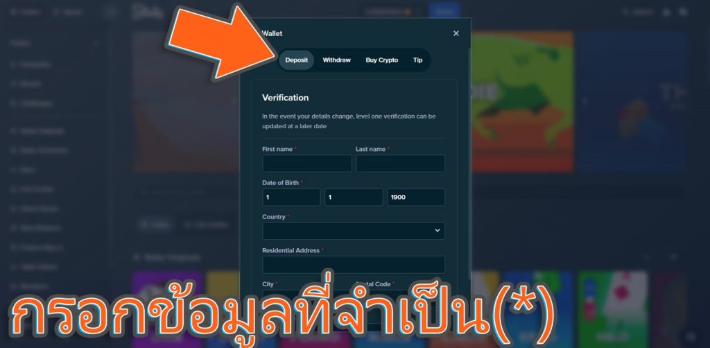 จากนั้นให้เลือก Deposit หากเป็นครั้งแรกให้ทำการกรอกข้อมูลที่จำเป็นเพิ่มเติมตามที่มีสัญลักษณ์ (*)