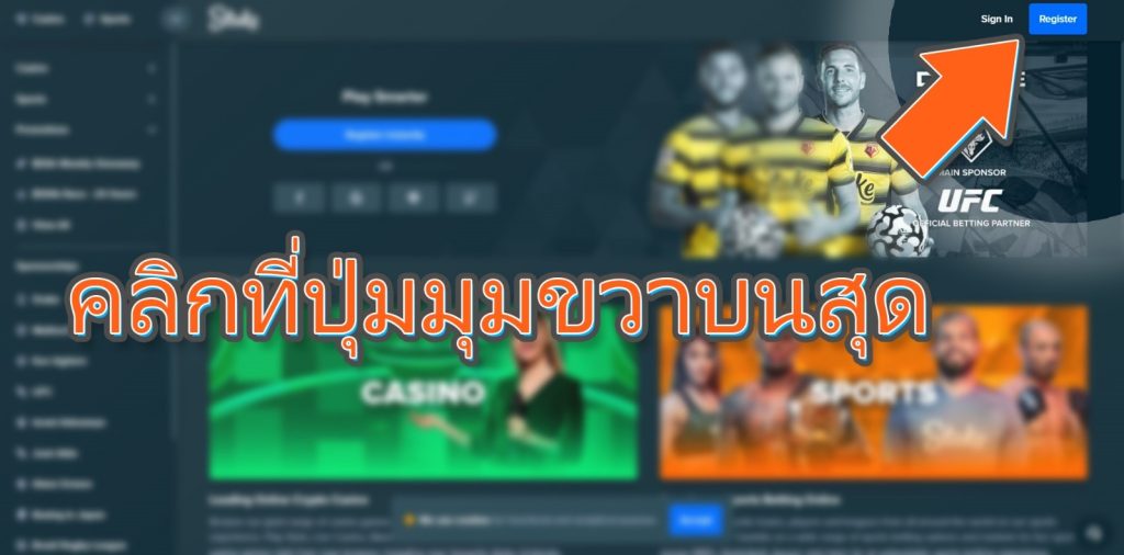 อันดับแรกให้ทำการกดปุ่ม Register ที่มุมบนขวาของหน้าเว็บ